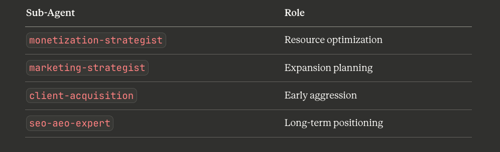Build specialized sub-agents. Assign invocations. Call the right group for the right task.